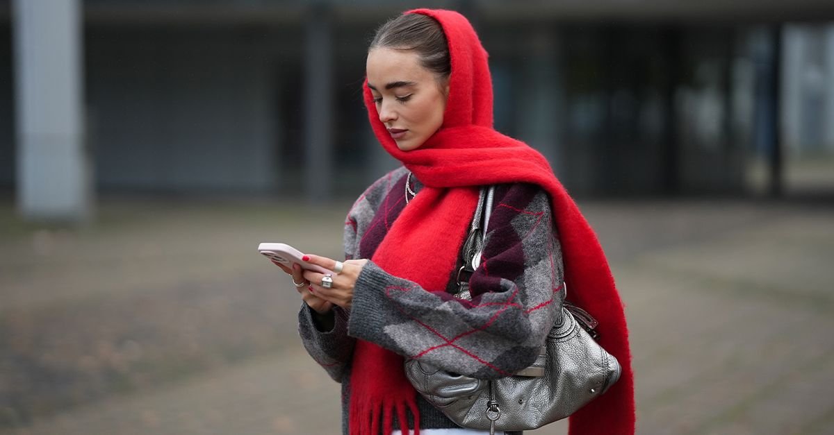 So is a chunky scarf. This red one is extra cute.