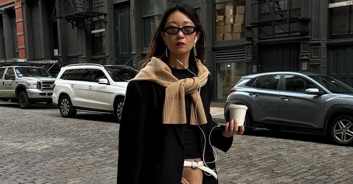 Style Notes: This combination works precisely because it challenges that long-standing idea that black and brown don’t belong together. Lately, though, more and more people are leaning into the pairing, and it looks unexpectedly considered when done right. A dark blazer grounds the look, while a brown skirt brings warmth and depth—especially effective in winter when lighter palettes can feel flat. The knit draped over the shoulders adds another layer of texture and softness, making the outfit feel intentional rather than overly styled. Finished with ankle boots, it’s practical, weather-appropriate and quietly confident without relying on obvious trend cues.