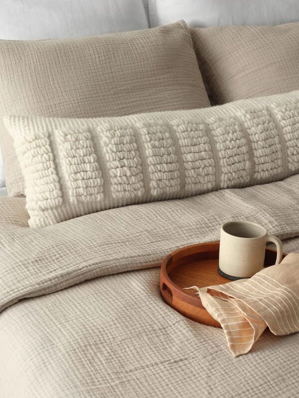 For pillows that are as stylish as they are supportive, we are obsessed with The Citizenry’s collection. These oversized lumbar pillows come in various styles and materials, ranging from cotton and linen to Peruvian alpaca and highland wool, all crafted by artisans in fair trade settings across Central America. (You can find out more about each of the makers on each individual listing page.) The designs are truly stunning, leveraging warm and neutral tones, Mayan patterns, and natural dyes from natively regional plants.