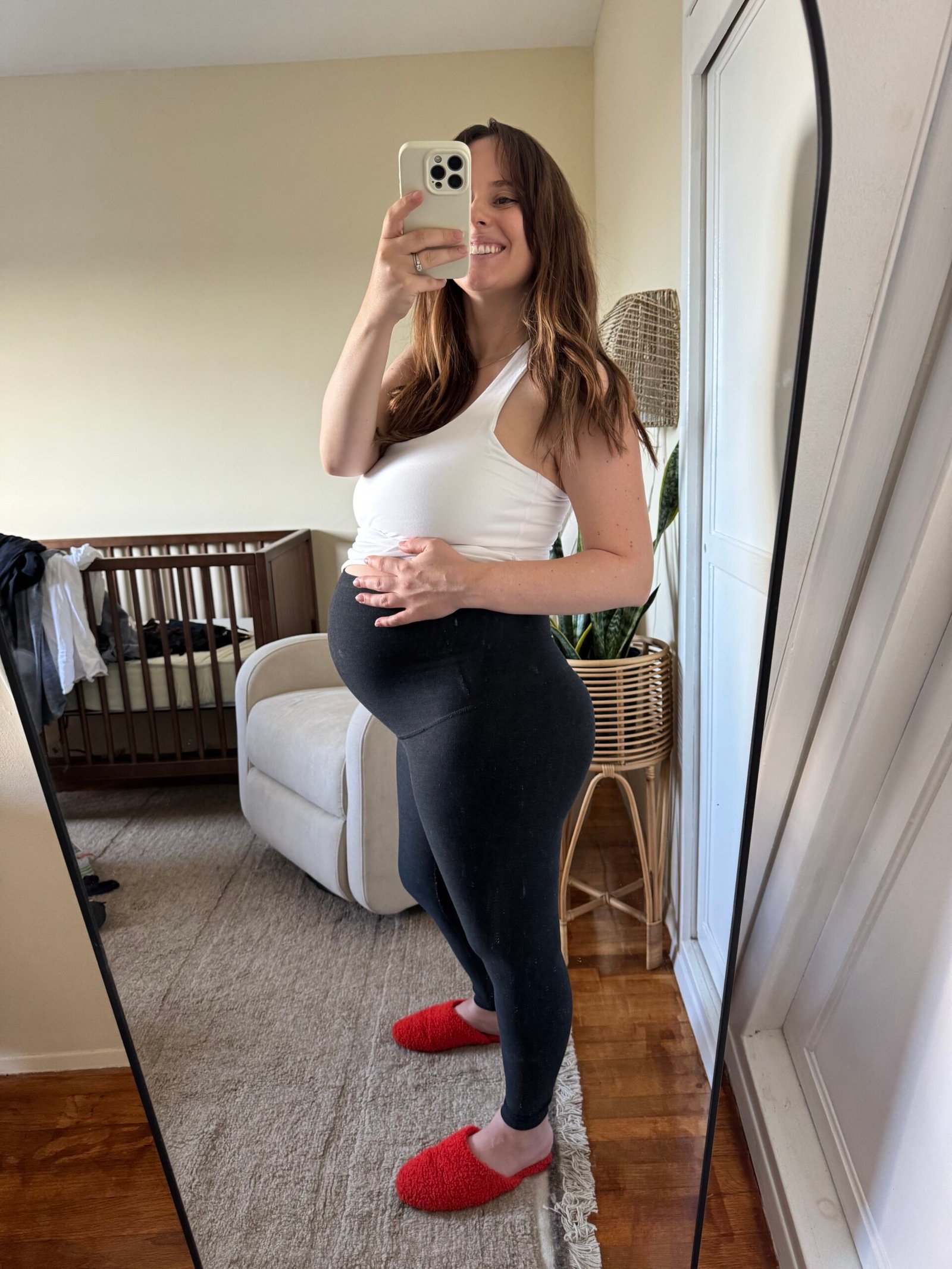 But let’s talk about the nursing tanks. I’m not even usually a tank top person, but these have become one of my most-worn staples in the second and third trimesters. They’re featherlight and breathable enough for the SoCal heat, but also layer beautifully under sweaters or jackets when it cools down. I love the extra padding (no more worrying about the nips showing through), and the clean silhouette makes them feel polished and versatile, not just “maternity.”
