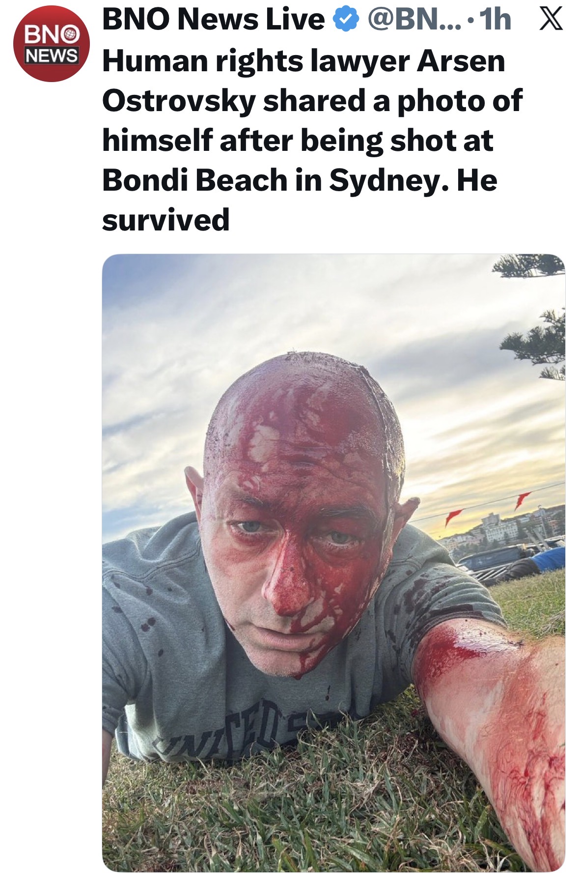 I know Arsen. He helped me enormously with my new book The Hidden Hand. I am shocked, truly, by what happened in Australia but grateful he survived. God bless him and everyone dealing with this horror this morning