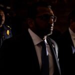 (L to R) Margot Robbie, Daniela Melchior, Idris Elba, Sylvester Stallone, and David Dastmalchian in ‘The Suicide Squad’