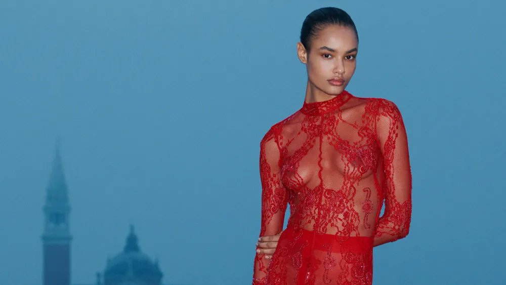 The enduring charm of Venice has always had a grip on David Koma, who this season indulged in the opulent decadence of the city with a cinematic look book and seductive collection, blending the two into an iconography enriched by Blumarine’s archival images from Helmut Newton and Albert Watson.