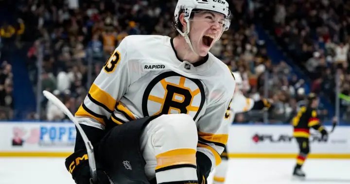 The young Bruin brought a large section of the lower bowl to their feet late in the first period when, stationed in the middle of the slot, he blasted a one-timer in past Canucks goalie Kevin Lankinen on a power play late in the first period.