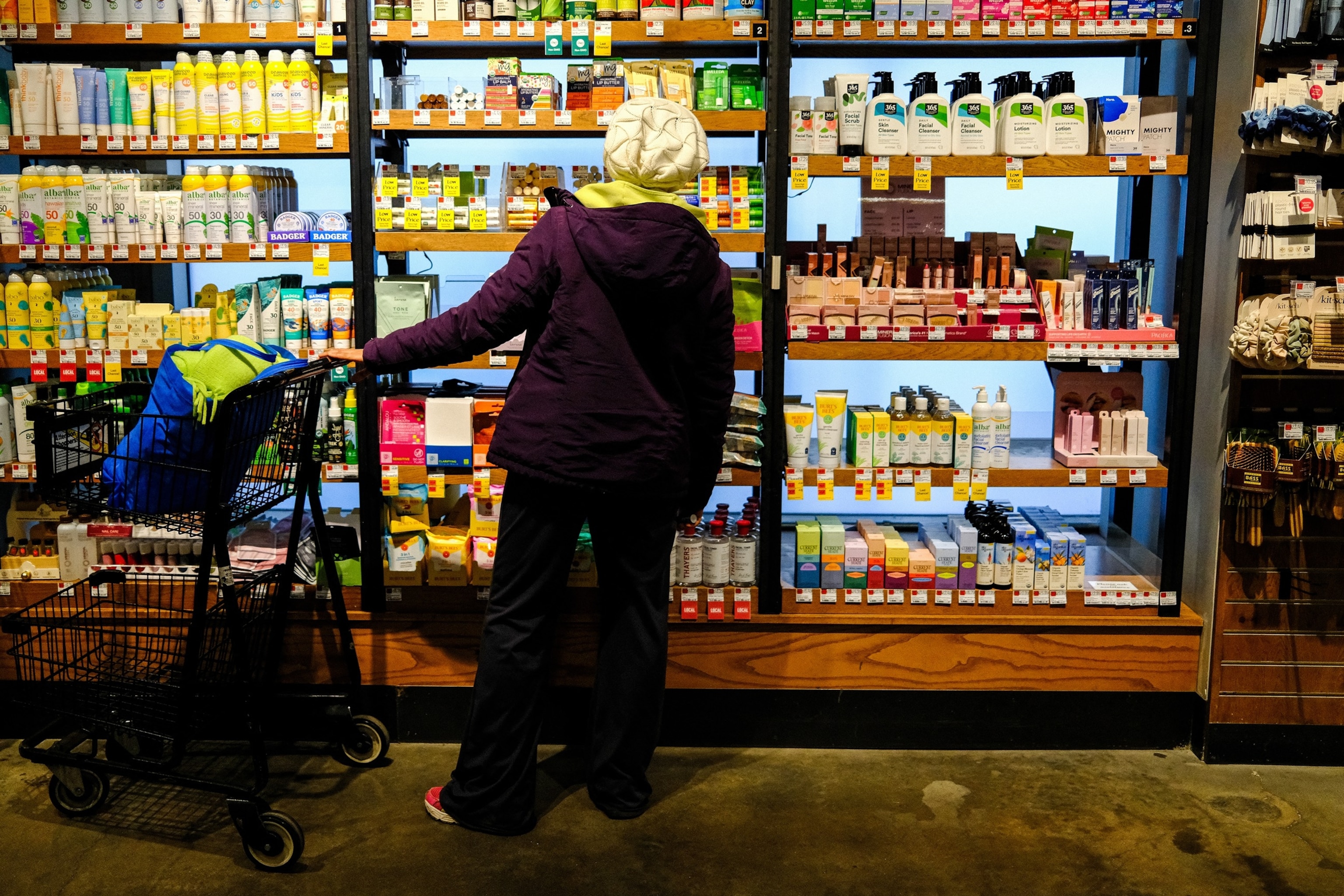 Customers shops for fruit in a supermarket in New York City, January 22, 2026.