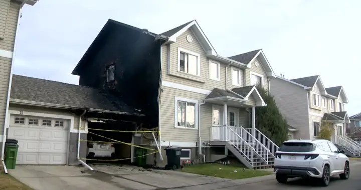 Edmonton Fire Rescue Services said crews arrived on scene five minutes after the 911 call to find flames along the rear exterior of a two-storey townhouse.