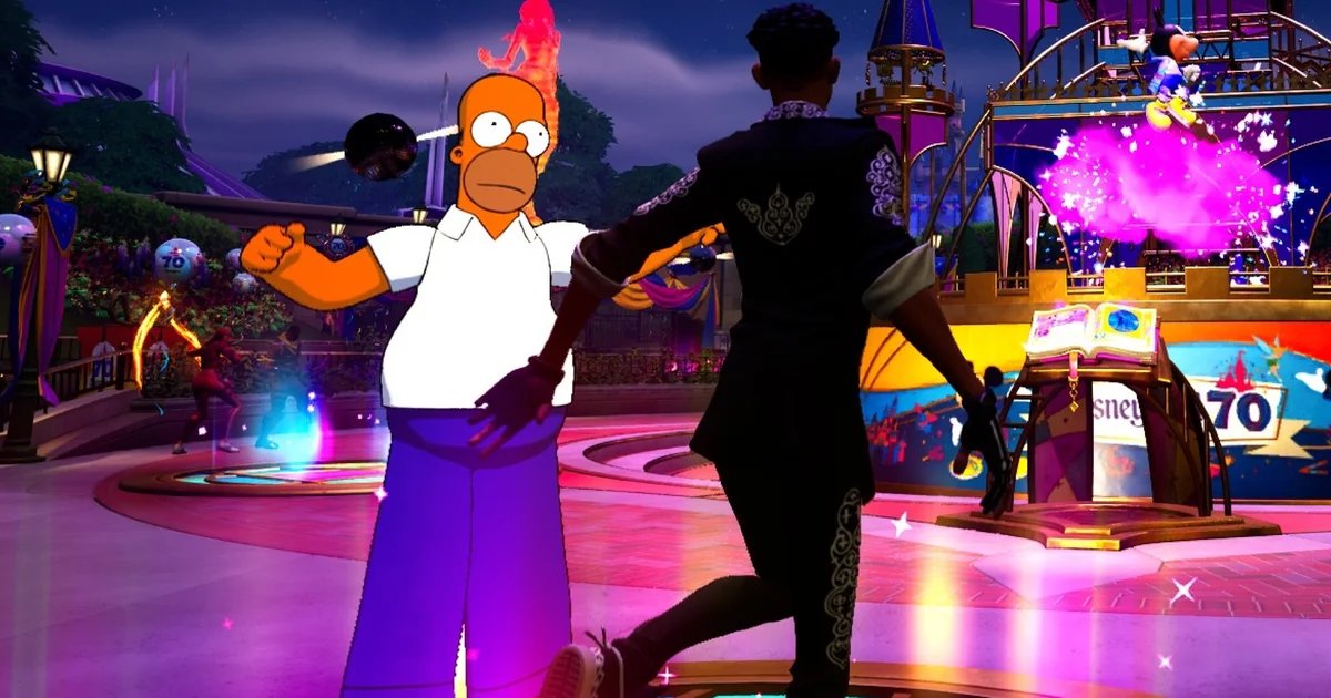 But the thing that struck me most is how little time you’re given to appreciate the attention to detail; it’s hard to describe Disneyland Game Rush as anything but chaotic brain-rot guff. There isn’t a moment when you’re not in the presence of an on-screen timer counting down the scant two minutes until you’re spat out somewhere else, lest your attention begins to wane. Every inch of the world is festooned in collectible goobers and trinkets to catch the eye and distract the brain – but I’m not sure the tweens are falling for it, given how quickly my sessions emptied. There are secret keys to find and cheap-looking rewards to unlock, and at one point everything suddenly ground to a halt for a scheduled dance party as fireworks took flight to this. It was about that time – as Homer Simpson, one of my session’s few remaining players, began gyrating purposefully toward me – I realised Disneyland Game Rush probably wasn’t for me.