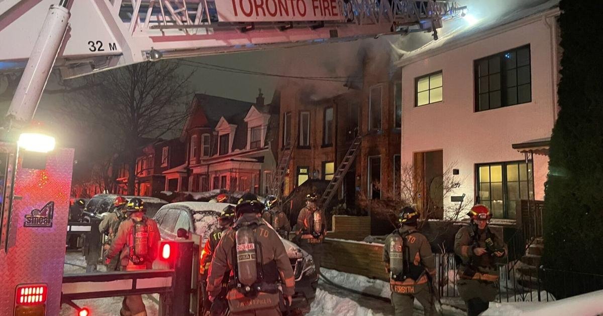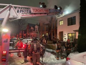 The fire on Stafford Street near King Street West Saturday night escalated to a three-alarm blaze as it spread to adjacent homes.