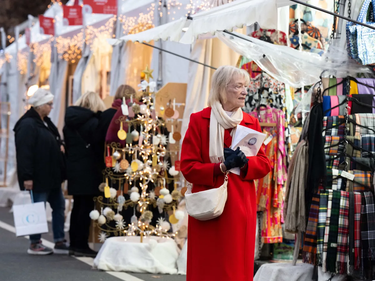 People walk among vendors at a Christmas market in Dupont Circle in Washington, DC, December 10, 2025. (Photo by SAUL LOEB / AFP via Getty Images) ·SAUL LOEB via Getty Images