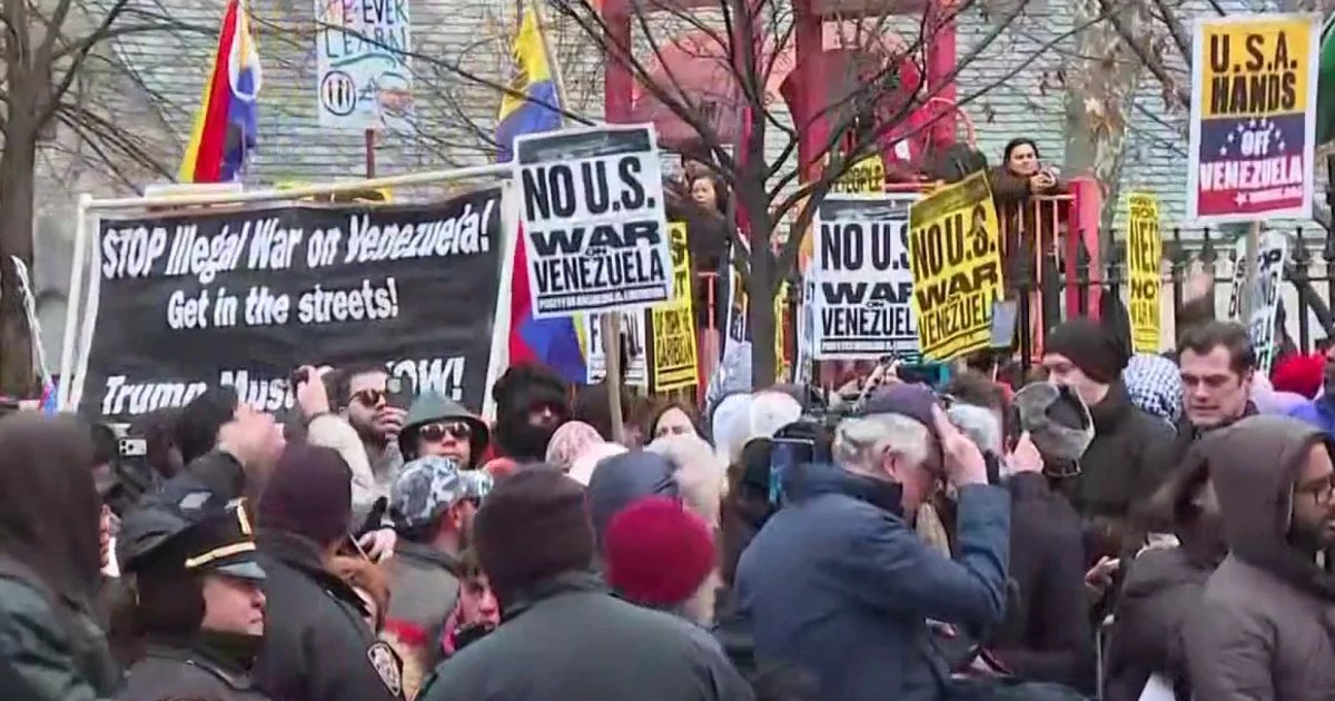 Demonstrators protest outside New York courthouse before Maduro arraignment