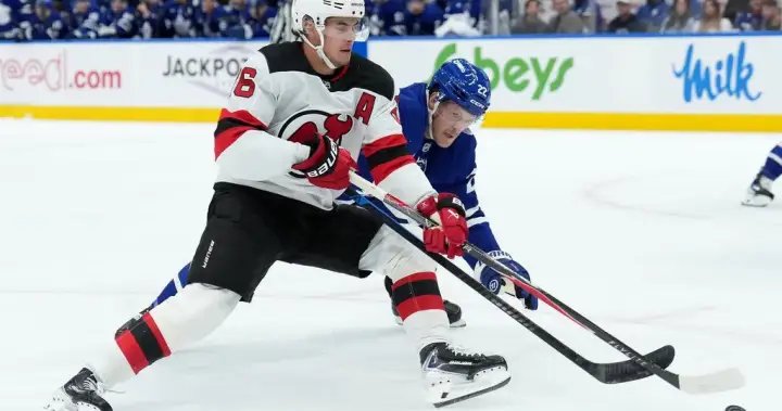 TORONTO – Jack Hughes registered the third hat trick of his NHL career as the New Jersey Devils topped the Toronto Maple Leafs 5-2 on Tuesday.