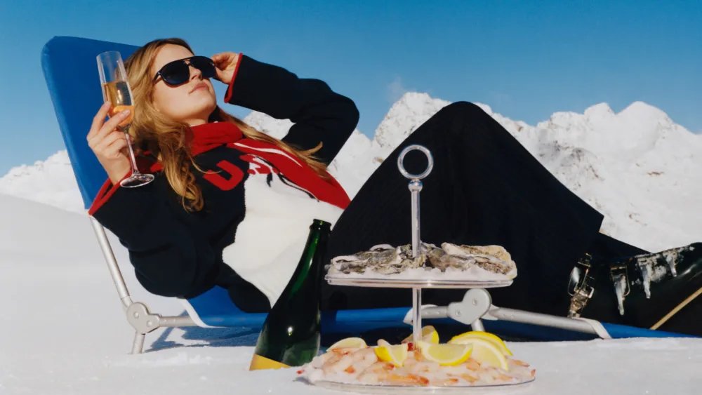 The 26-piece collection spans knitwear; elevated loungewear; cold-weather accessories for women, men, and kids, and vintage-inspired patches. There are also two performance jackets, for men and women. They were created with U.S. Ski & Snowboard’s on-mountain partner, Kappa, with a “refined mountainside design.”