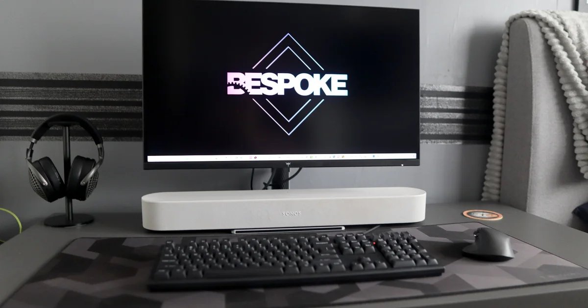 This KTC panel also benefits from strong adjustment, with swivel, tilt and good scope for height adjustment. It can also go into a portrait mode if you want to use it as a second screen in your setup, or for any vertical workloads in a pinch. The flat base it comes with takes up less space than more typical V-shaped legs, and also allows you to stand items on it – in my case, it’s a Sonos Beam soundbar for a more compact audio setup.