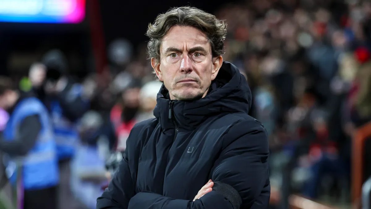 Head Coach Thomas Frank of Tottenham Hotspur looking onwards with his arms crossed.