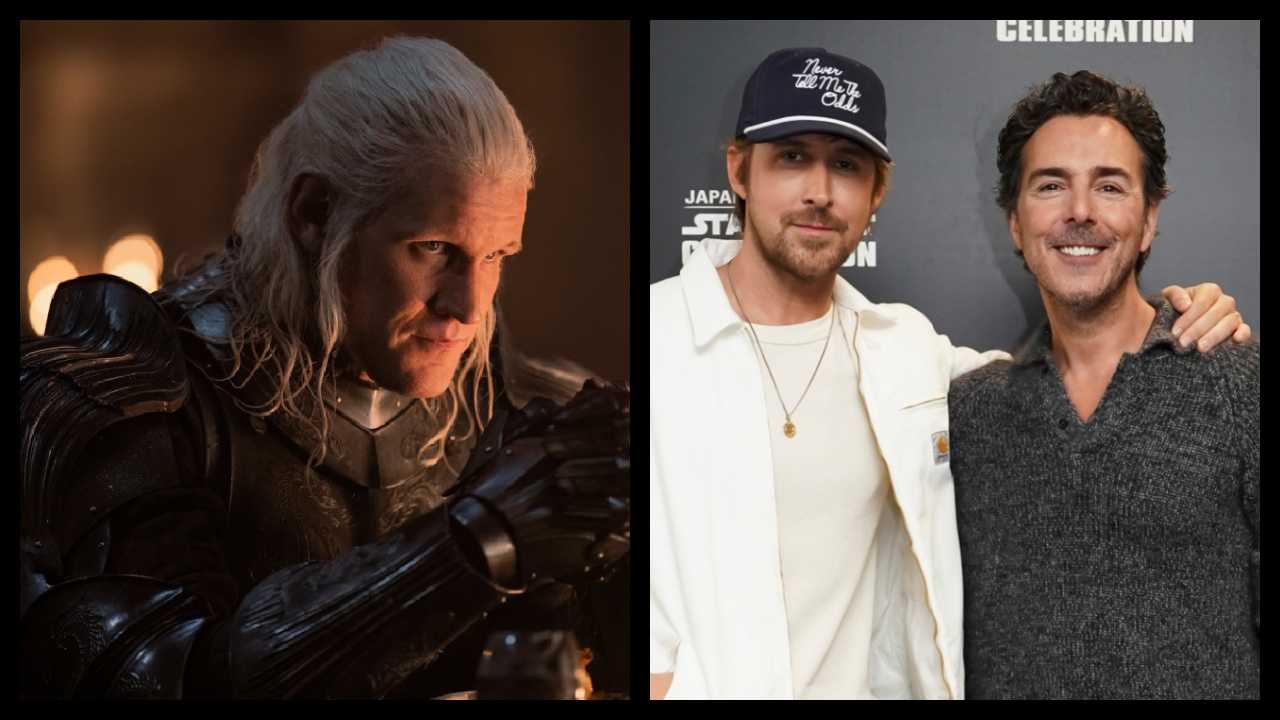 (Left) Matt Smith in HBO’s ‘House of the Dragon.’ Photograph by Ollie Upton/HBO. (Right) (L to R) ‘Star Wars: Starfighter’s Ryan Gosling and director Shawn Levy at Star Wars Celebration 2025. Photo: Lucasfilm.