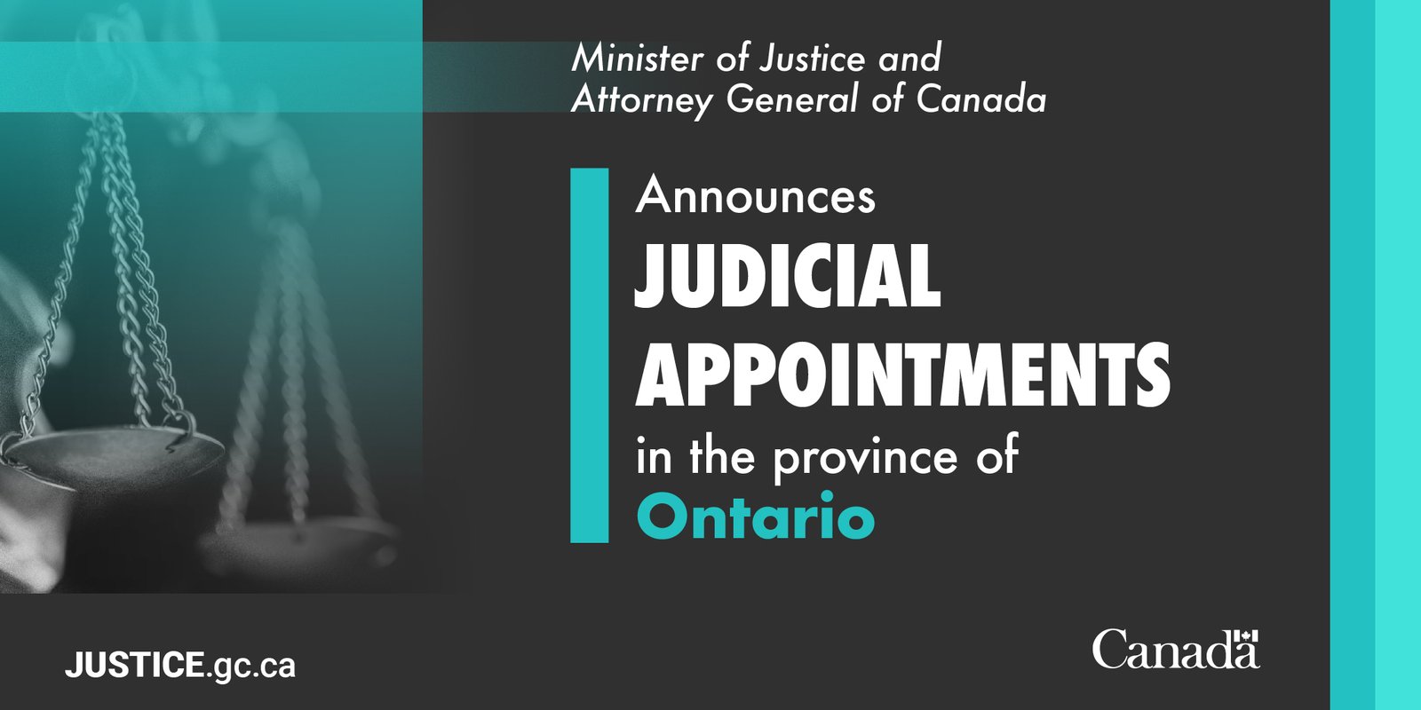 The Honourable Sean Fraser, Minister of Justice and Attorney General of Canada and Minister responsible for the Atlantic Canada Opportunities Agency, today announced the following appointments under the judicial application process established in 2016. This process emphasizes transparency, merit, and the diversity of the Canadian population, and will continue to ensure the appointment of jurists who meet the highest standards of excellence and integrity.
