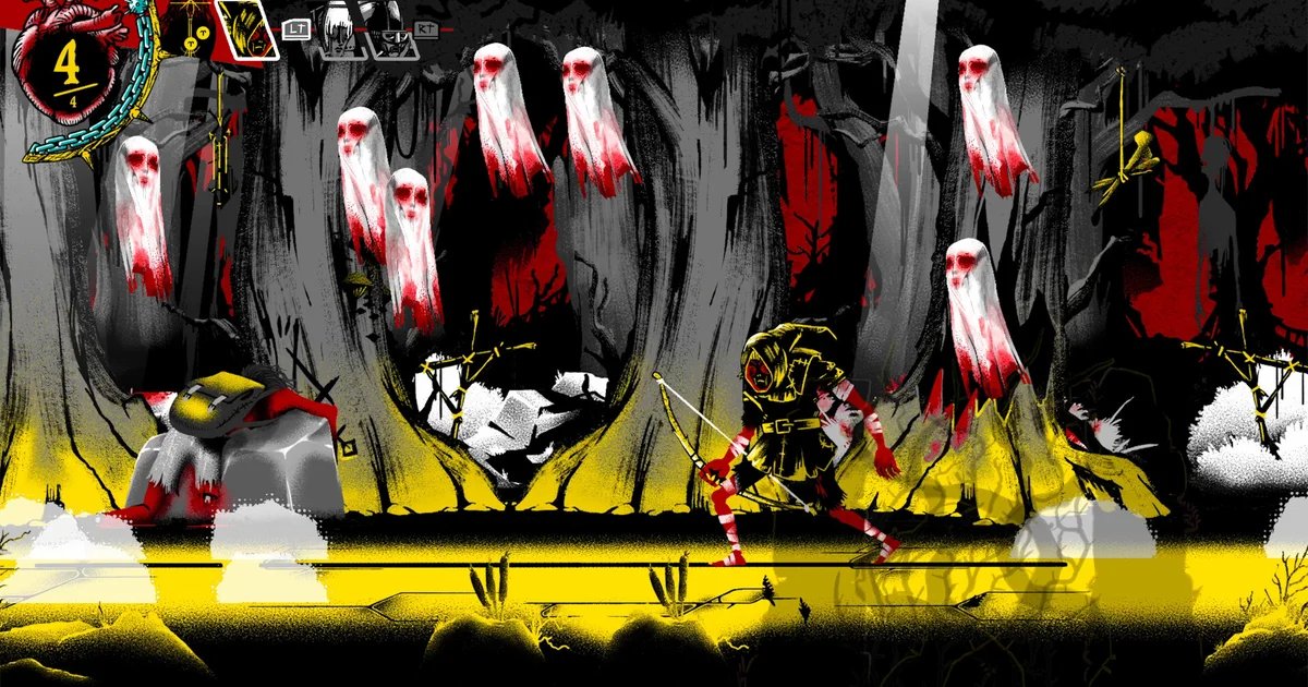 To start, you are tasked with finding a troll finger. You set out into the world, this miserable little world, on a 2D plane, your only directional options being left or right. When you finally meet enemies, you can slash at them with your weapon, be it a femur, a knife, or a scimitar you pick up after slicing a skeleton in half. There’s a dodging mechanic, you both consume items for health or lob them at your opponents for damage, this starting class can also kick or block with a shield. It is laborious in a way that teeters on the edge of being insufferable, though I expect it’ll fall right off for some.