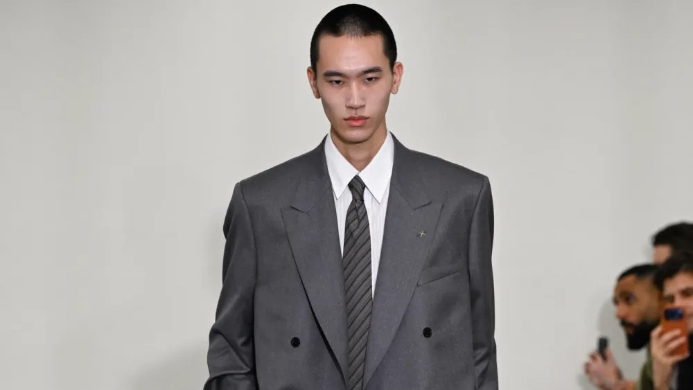 The 79-year-old designer, still svelte enough to fit into suits he’s owned for 20 years and as silly as ever, was chuffed to report that the “nice young helpers” on his refreshed design team are very into his archive, plucking choice looks, mostly from the ’80s, and giving them another spin in the fashion cycle.