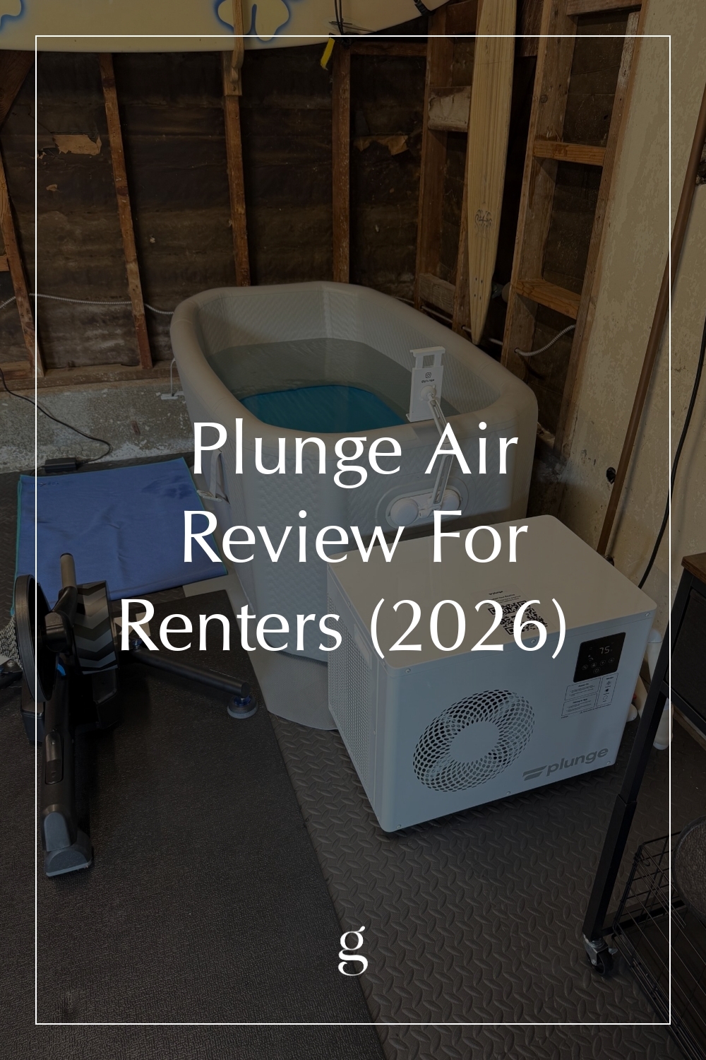 We decided to set the tub up in the corner of our garage, which is the most practical option in our current rental. While the Plunge Air isn’t overly large, measuring 61 inches long, 32 inches wide, and 28 inches high, it weighs over 900 pounds when filled, so finding a flat, low-traffic area felt key. Our garage isn’t insulated, but we added some gym mats for warmth and comfort underfoot, and the included cover has been great for keeping out dust and debris.