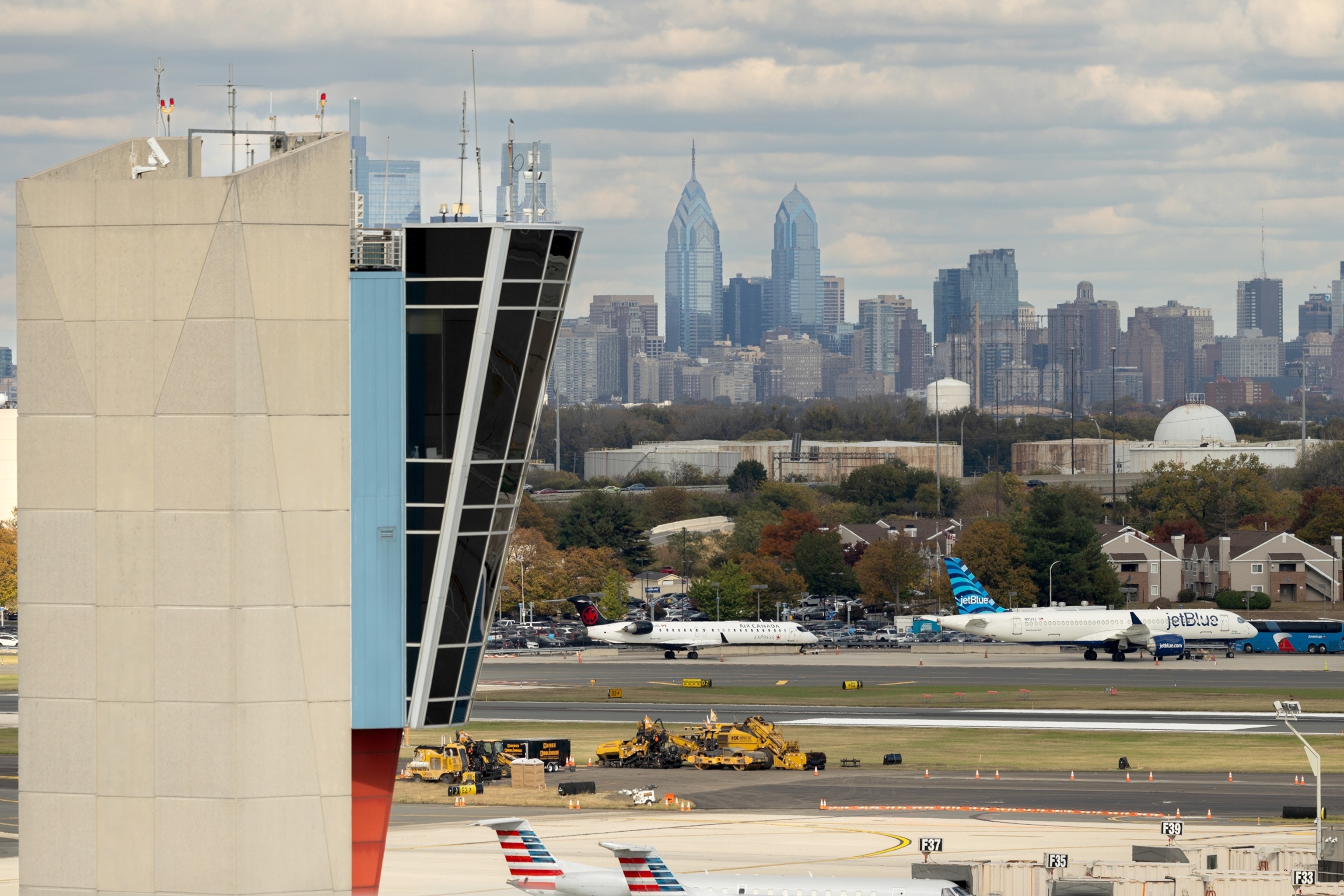 FAA air traffic control tower at Philadelphia International Airport (PHL) in Philadelphia, Pennsylvania, Oct. 24, 2025.