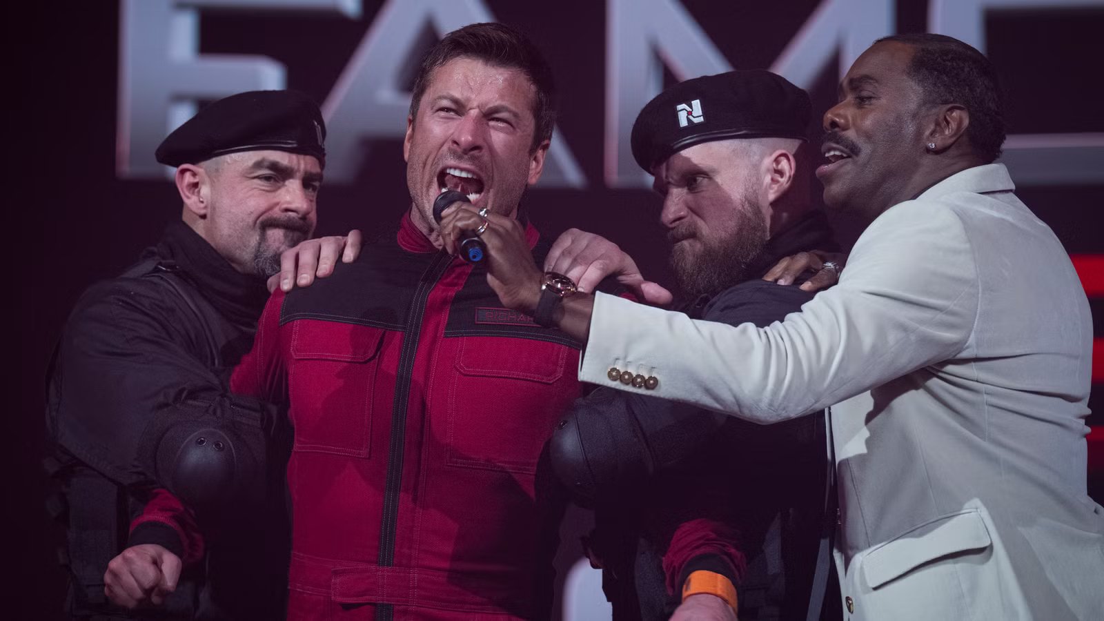 But Richards refuses to become a network-sponsored murderer, and tries to crash his plane into Free-Vee headquarters. Killian has the plane shot down, heedless of the city blocks the wreckage will destroy. Richards survives, apparently (as communicated in blurry footage on a viral videotape vlog) fleeing the wreckage in an escape pod. He somehow finds Sheila (Jayme Lawson) and Cathy, who are alive and living in comfort and safety: They presumably got their network payout for Richard’s Running Man appearance as promised, and graduated to the upper class. (Apparently this version of the show and Killian aren’t as crooked and petty as the Glaser version, which kills off any contestants who survive the Hunters.)