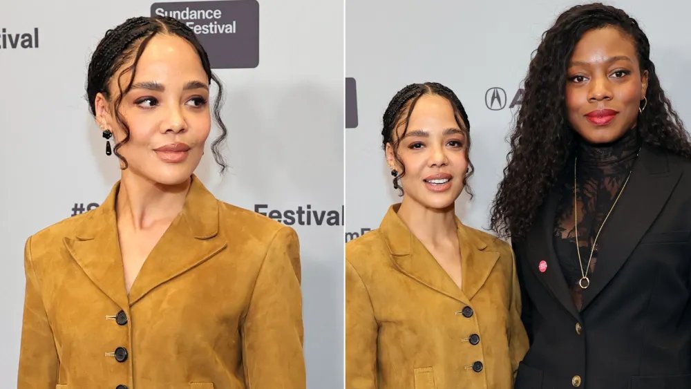 Tessa Thompson added Khaite suede tailoring to her textured awards-season lineup at the 2026 Sundance Film Festival in Park City on Friday night.