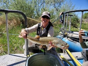 CPW’s Jenn Logan holding a Colorado pikeminnow, a critically endangered fish, during a native fish survey on the White River.