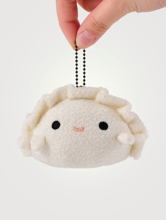 The mini Ricedumpling keyring is crafted from ultra-soft white fabric with a black ball chain, making it a cute, compact companion for keys or bags. Part of a handmade collection where every piece is unique, it’s made from 90% polyester and 10% PE beads, suitable for ages 3+ and imported.