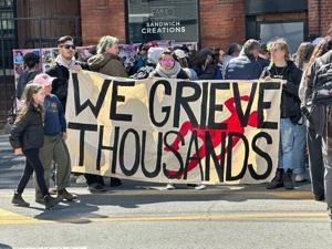 A crowd gathered Saturday at the downtown Moss Park supervised site to protest the end to provincial funding announced for June 13.