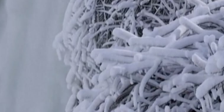 Tourists flock to a frozen Niagara Falls