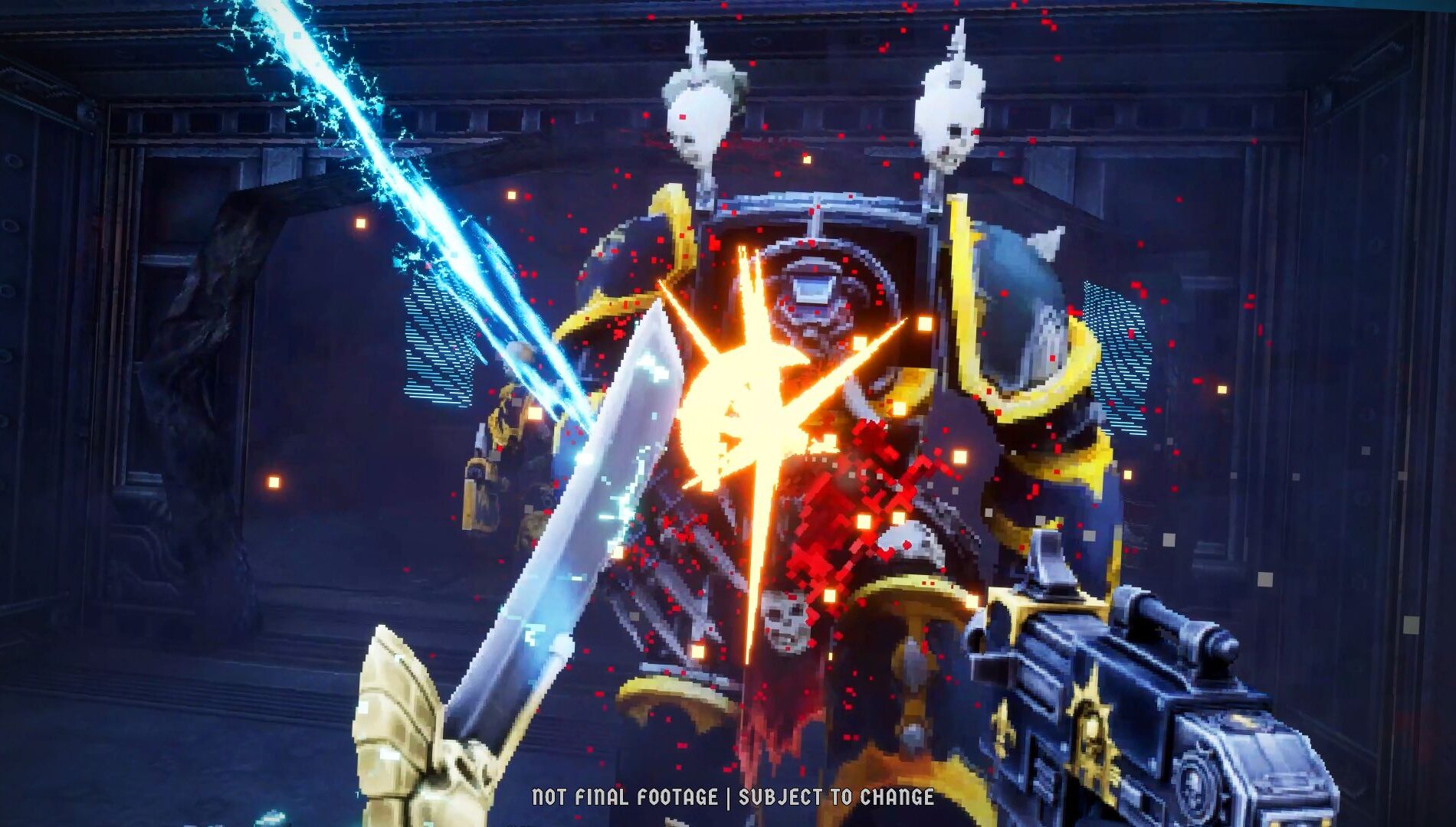 Anyone who has played Boltgun will know Malum Caedo’s Chainsword is an integral part of his gameplay. When it came to Nyra, we needed her Power Sword to feel equally important to her character.
