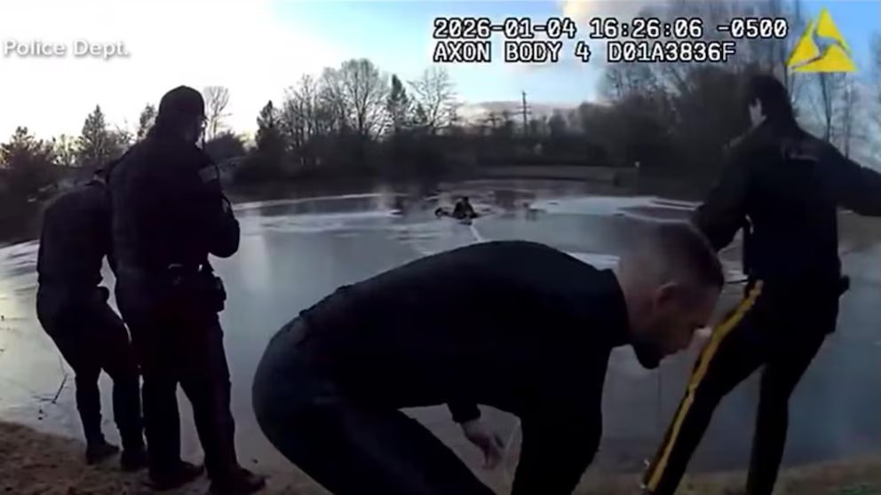 Police officers in Woolwich Township, New Jersey, rescued a 13-year-old boy who fell through thin ice into a freezing pond.