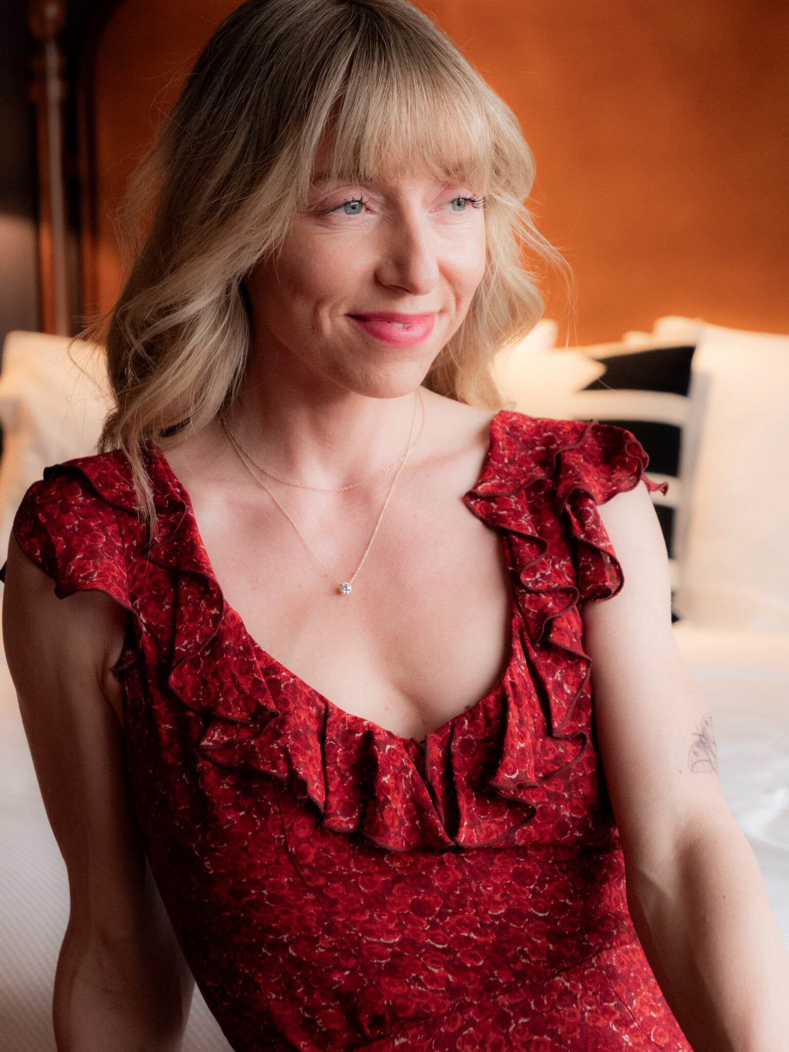 I had the opportunity to personally try a selection of Brilliant Earth’s staple jewelry pieces. Each piece is made from a variety of lab-grown stones, repurposed metals, and natural, ethically sourced stones and metals. This included two necklaces, a cocktail ring, a tennis bracelet, and a pair of gold-and-diamond earrings. I was able to test and experience how each felt and truly see if I could tell the difference between lab-grown and natural. (I couldn’t!) Below is my review of each.