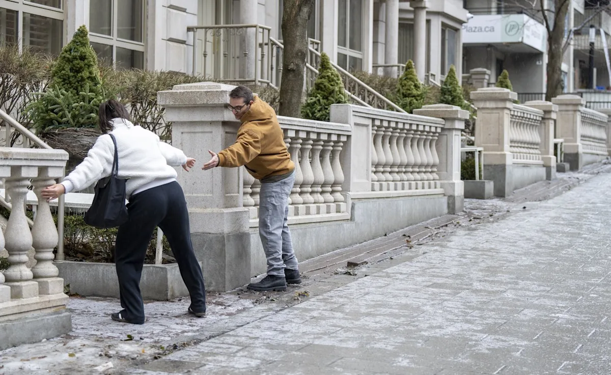 “I just fell, actually. I’m not wearing my crampons because this morning it wasn’t icy yet when I left,” said Marc Ladouceur, 29, who was meeting a friend for coffee in downtown Montreal.
