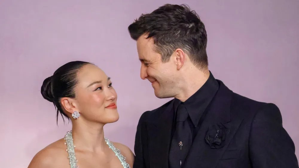 Yerin Ha and Luke Thompson at the “Bridgerton” season four world premiere on Jan. 14 in Paris.